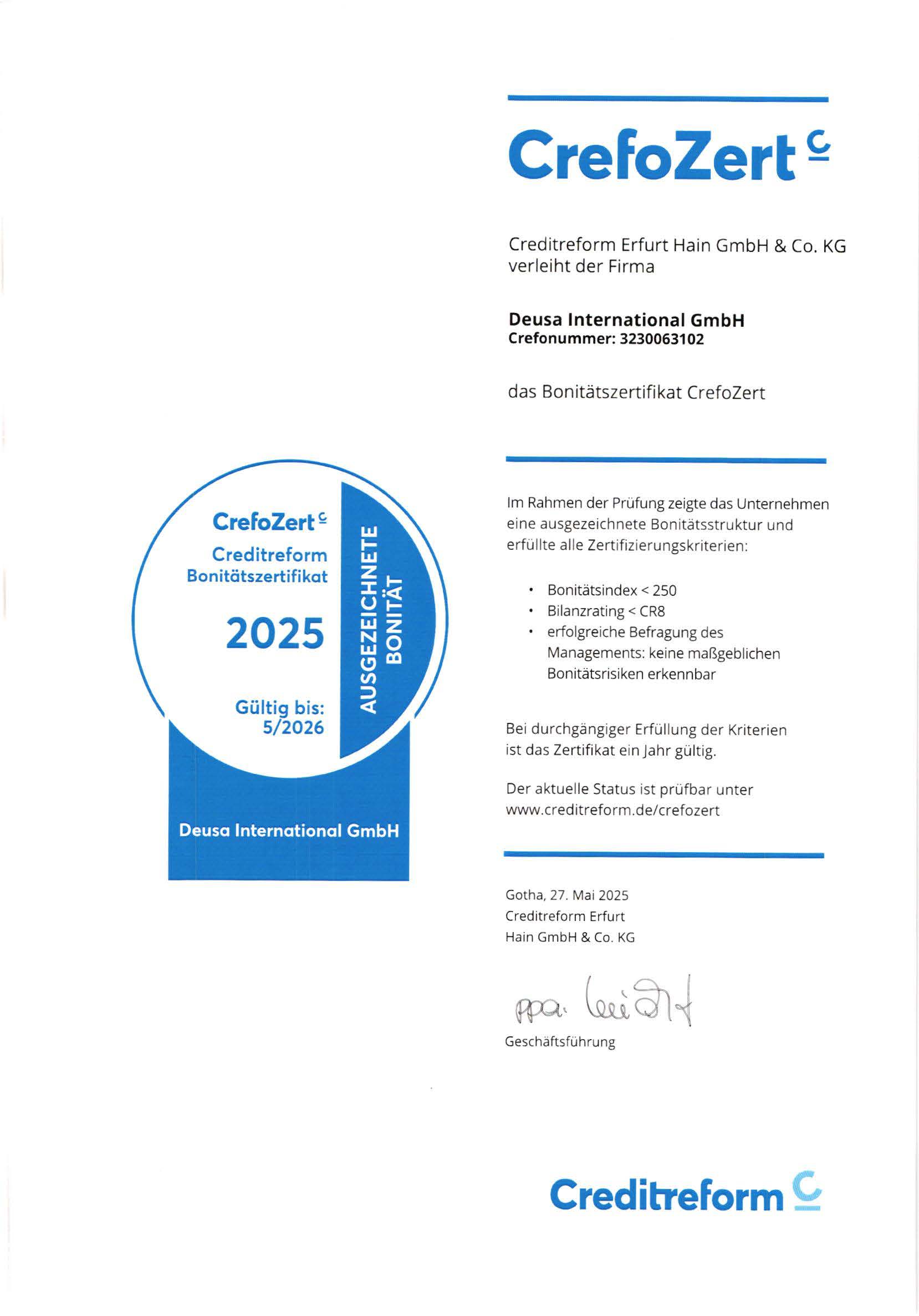 Bonitätszertifikat